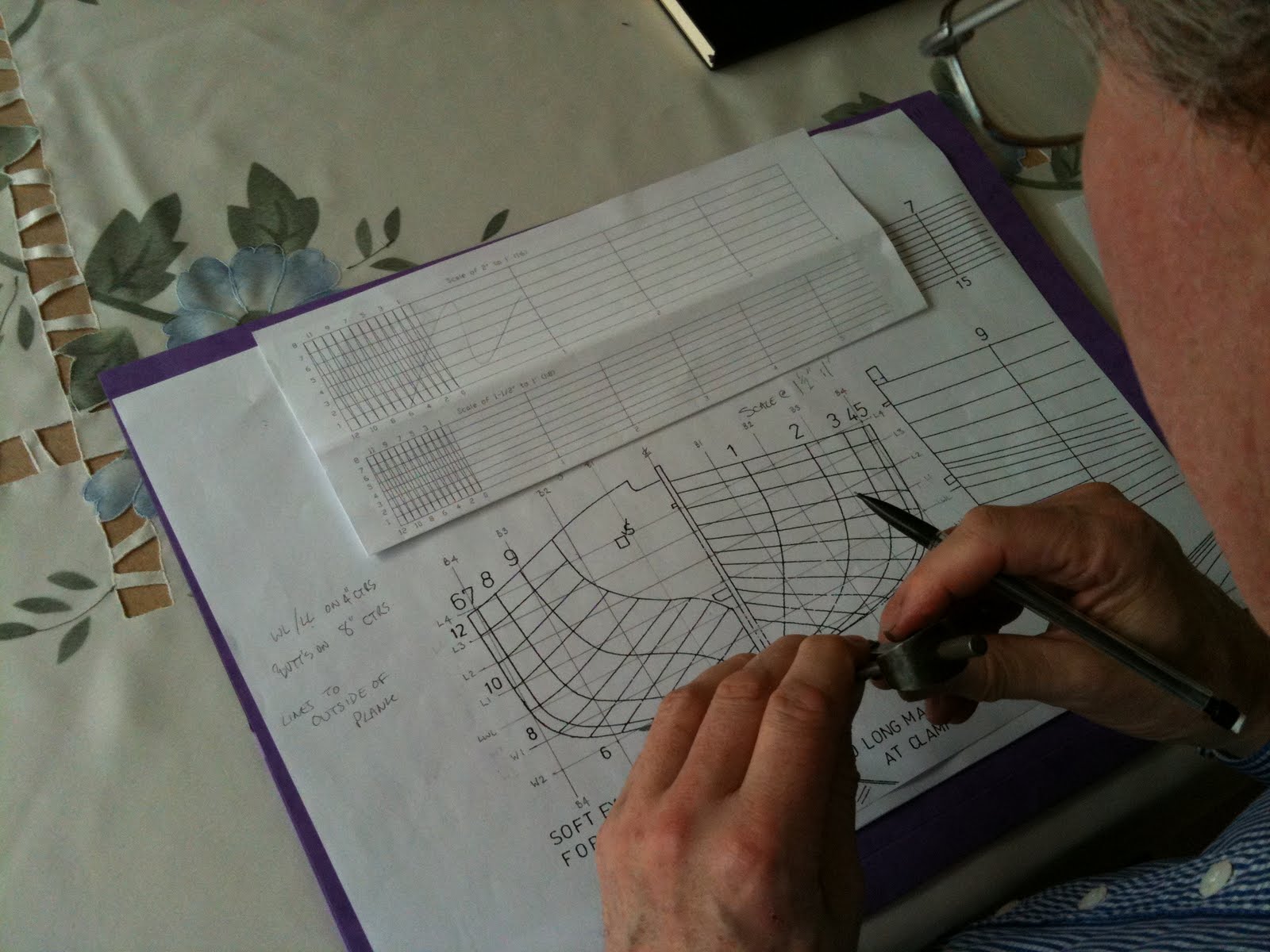 We got off to a good start, no I mean that, it was a good start and it then continued to go well, we have our grid drawn and have the profile drawn including the all important sheer which looks 'fair', the challenge now is to ensure that we can fair the rest of the lines and create a flowing and attractive hull which is both see & sea worthy